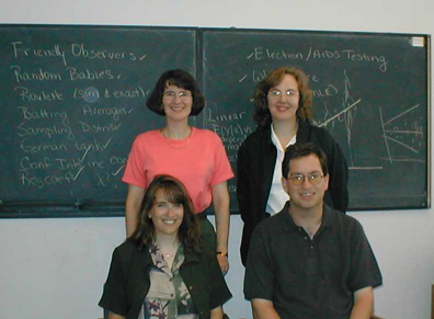 The links to your left will take you to pages that contain project documents (including the text of our NSF proposal), and papers and reports generated via this project.  Below we have information about the project including references to the materials we will be adapting and implementing, how to contact the project PIs, and pictures of people who have worked on the project with us.  All pictures on this page are thumbnail images - click on the picture for a higher resolution image.